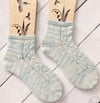 You will need approx 233m (355yds) of sock yarn to make 1 pair of women's US8, UK6, Eur38 socks. Snowdrops was designed as a top down sock and for dpns but can be made with addi sock wonder or crasy trio needles or using the magic loop method. You will need US1.5 (2.50mm) needles for the main body and either US0 (2.00mm) or US1 (2.25mm) needles for the picot edge. You will also need a tapestry/darning needle and optional stitch markers.