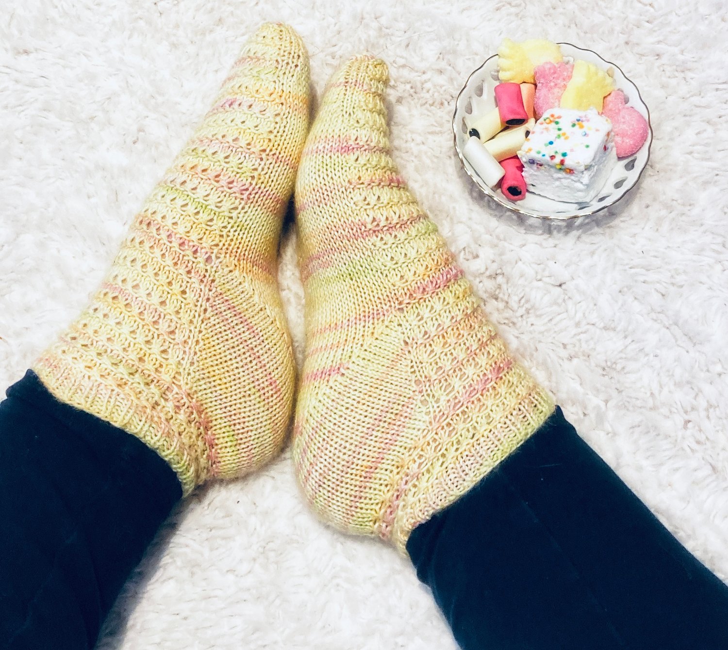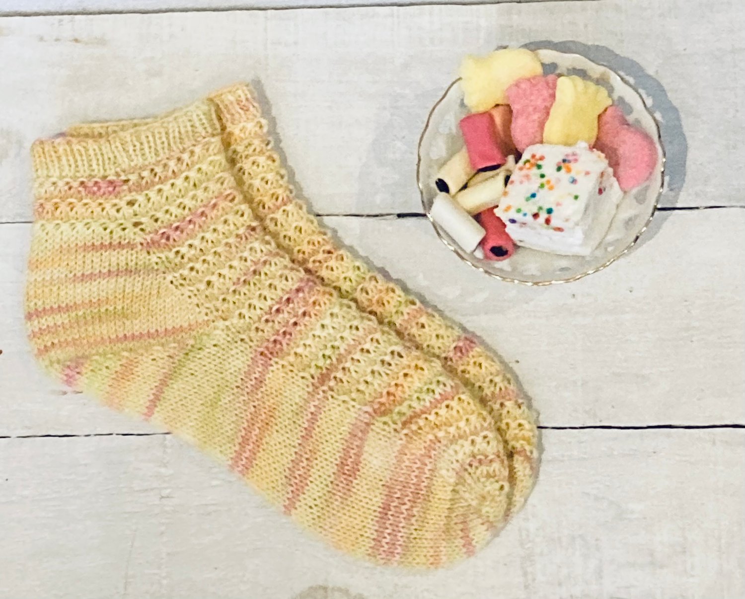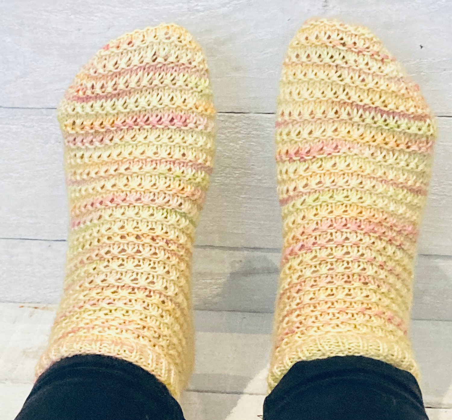 Super cute shortie socks that let you play with pretty sock yarn, with a simple pattern that can run the whole way down the foot. What more could a sock knitter want? These socks are really comfortable to wear and because they are shortie socks will knit up in no time.