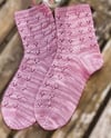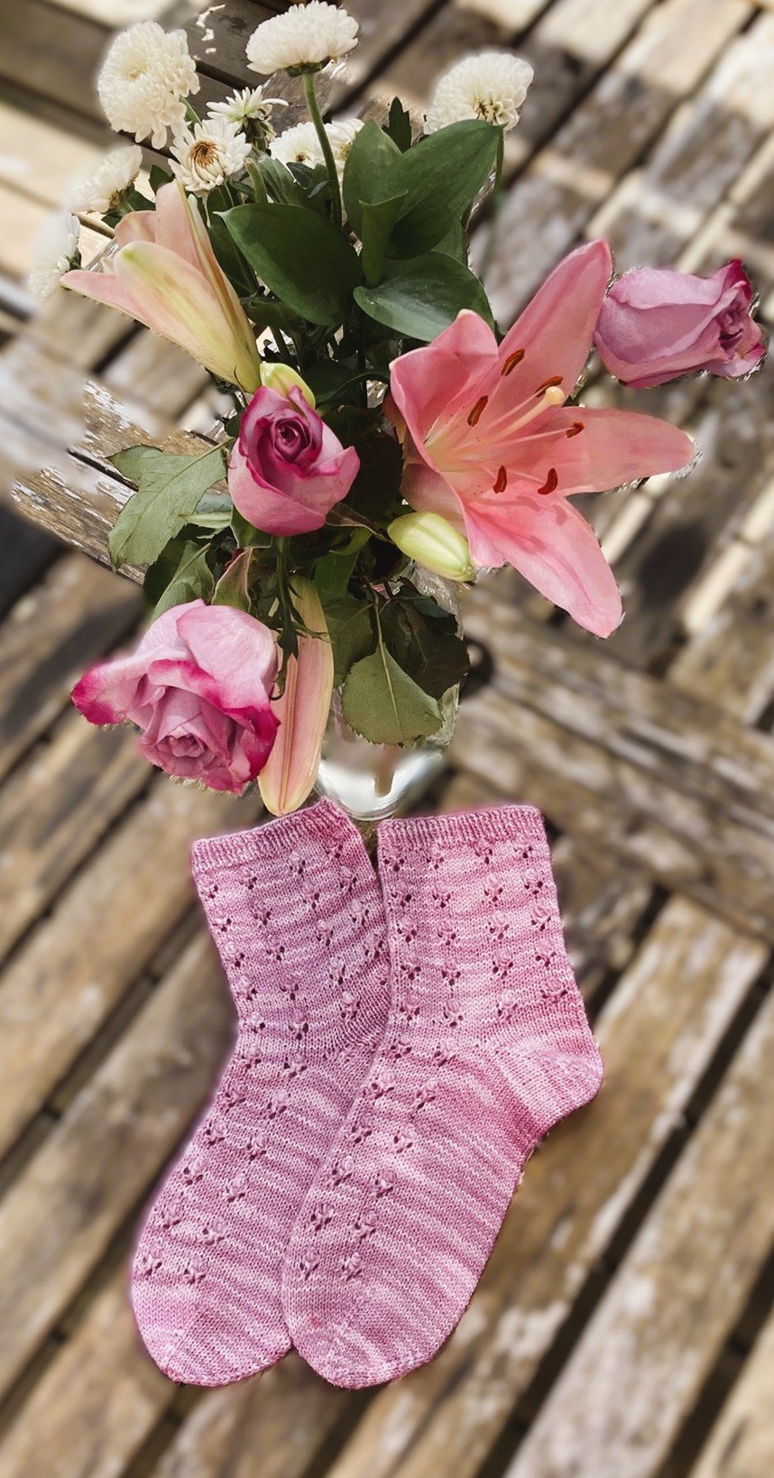 A sweet rosebud of a sock for popping on tired feet after a satisfying day at a garden show or working hard in your own garden. Perfect in lovely pinks, dark reds, or pale yellow to show off your special roses.