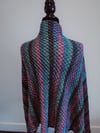 A simple but elegant wrap for when the weather turns. You still want to stand outside and sip your hot chocolate but it’s too cold for just a shirt and too warm for a jacket. This wrap is a simple four row repeating pattern that is given interest by changing colours. It has a lovely brocade texture when completed.